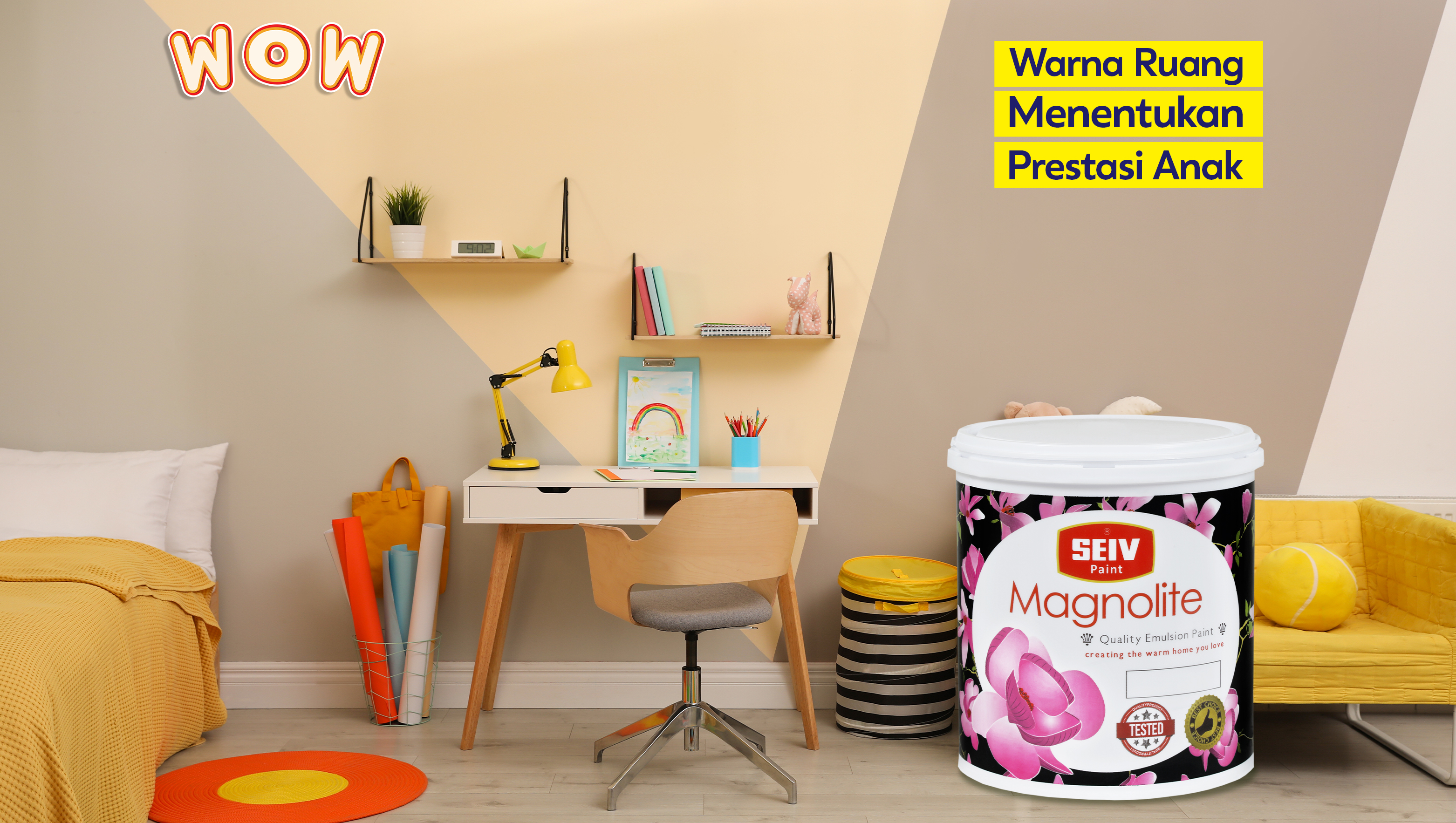 Dasarnya hal ini membawa kemudahan untuk Si Kecil untuk meraih hal yang diinginkan. Perbedaan yang cukup signifikan saat berperan untuk perkembangan belajarnya di jaman ini, membuka pilihan mudah bagi orang tua untuk membantu Si Kecil raih masa depan gemilang yang salah satunya adalah warna ruangan. Ayo ciptakan warna ruang yang berkualitas untuk si Kecil dengan Cat SEIV Magnolite. Dengan ragam warna berkualitas agar daya intelektual selama belajar di rumah menjadi optimal. Kualitas Warna, Hasil yang Optimal dan Hasil yang Wah dari Cat SEIV Magnolite akan membuat hidup anda dan keluarga Lebih WOW.